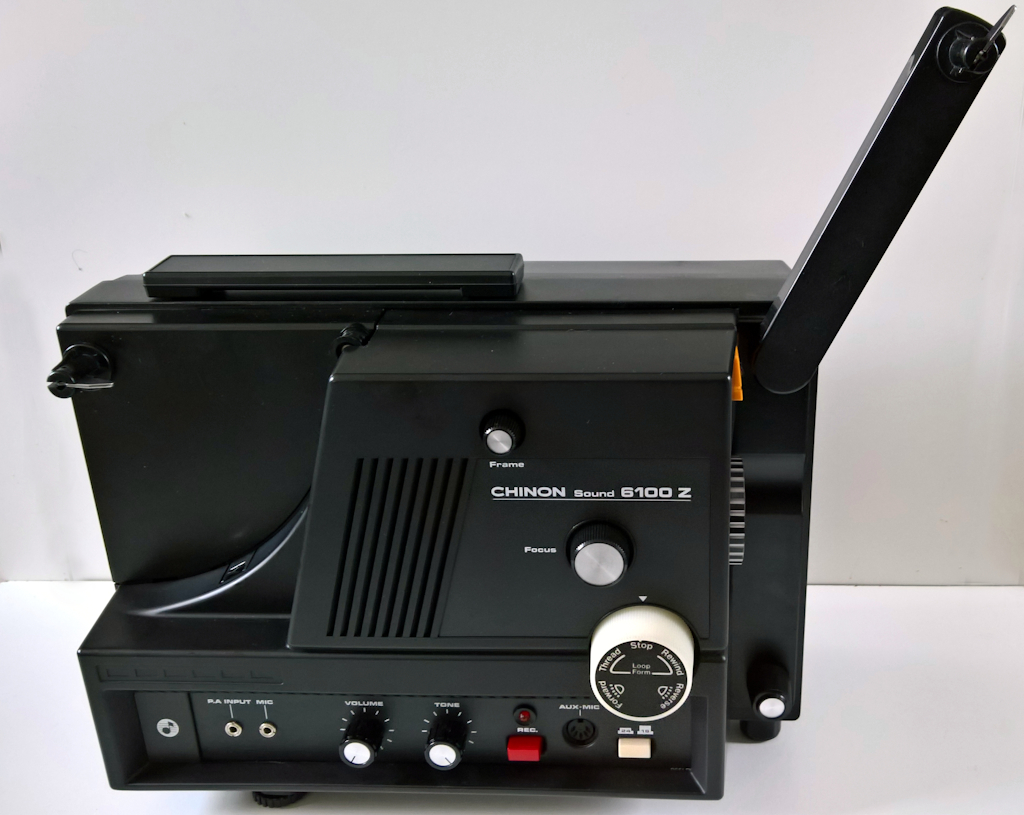 | CURRENT PROJECTORS IN STOCK HERE STARTING FROM JUST £129.99 | |  | | | YOU MAY NEED TO REFRESH INTERNET EXPLORER, FIREFOX Etc. TO SEE THIS PAGE UPDATED | | | [ EXPRESS CHECKOUT ] | | | PURCHASE ANY OF THESE PROJECTORS BELOW USING THE EXPRESS CHECKOUT OPTION AND ONLY PAY £3.00 PACKAGING & POSTAGE (U.K. ONLY) | | | *** PROJECTORS NOW COME WITH A 6 MONTH GUARANTEE *** (See Bottom Of This Page For Terms & Conditions) | | ***************************************************************************************************************** Note: Projectors do not include a empty reel unless stated in the description. ***************************************************************************************************************** | | | ++++++++++DUAL 8MM SILENT (SUPER 8MM & STANDARD 8MM)++++++++++ | |  | | CINEREX 818 AUTO DUAL 8 SILENT PROJECTOR - £129.99 (SOLD) Super 8mm Silent & Standard 8mm Silent Projector. Lamp: 8v 50w (A1/17). Reel Capacity: 400ft. Film Format Change: Auto, By Lever. Lens: f: 1.5 \ F: 18-30 mm Zoom Lens. Projection: Forward, Reverse, Still. Projection Speed: Variable Speed. Variable Speed Control: By Rheostat. Film Loading: Automatic Threading. Motor: Magnetic Motor. Power Source: 240 V AC, 50/60 Hz. Includes: New Drive Belt, Original Operating Instructions, Original Packaging (Tatty), Super 8mm 400ft AutoReel. Note: This isn’t the quietest Cinerex 818 I’ve ever worked on so don’t purchase if you want a smooth quiet running projector. The black plastic body has discoloured in places. | | .jpg) | | SANKYO DUALUX-1000 DUAL 8 SILENT PROJECTOR - £159.99 (SOLD) Super 8mm Silent & Standard 8mm Silent Projector. Lamp: 8v 50w (A1/17). Reel Capacity: 400ft. Film Format Change: Auto, By Lever. Lens: Sankyo Zoom 1: 1.4 f: 15-25mm. Projection: Forward, Reverse, Freeze-Frame. Projection Speed: 14 to 22 fps. Variable Speed Control: By Rheostat. Film Loading: Automatic Threading. Motor: AC Magnetic Motor. Power Source: 110-125-160-200-220-240 V AC, 50/60 Hz, 130 VA. Includes: New Drive Belt, Original Sankyo 400ft Auto-Reel, Gate Brush, Original Supply Spindle Adapter. A4 Print of Instruction Manual. Original Packaging. | | | ++++++++++SUPER 8MM SOUND++++++++++ | |  | | CHINON SOUND 7500 PROJECTOR - £199.99 (SOLD) Format: Super 8mm Sound Projector. Lens: Chinon Zoom F: 1.3 15 - 30mm. Lamp: 15v 150w (A1/232). Reel Capacity: 600ft. Film Loading: Automatic Threading. Projection: Forward, Reverse. Projection Speed: 18, 24 fps, with Speed Adjustment Control. Speed Adjustment Control: By Rheostat, +/- 1 Frame. Sound: Magnetic Playback on Main Sound Track. Sound: Mono. Sound Controls: Volume, Tone, Sound-On-Sound. Amplifier: Transistorised: 2 IC’s, 8 Transistors, 14 Diodes, 2 LEDs. Output Power: 15W (8 Ohm). Public Address System: Volume Control, Sound Mixing on Playback. Recording: Magnetic, Sound-On-Sound, Adjustable Volume Control, Sound Fade Control, Warning Lamp. Recording Level Control: Auto and Manual with Auto/Manual Switch, Manual Recording Warning Lamp. VU Meter: Recording Level. Input Terminal: Public Address, Microphone, Auxiliary (300 mV, 1 MOhm). Input Jacks: PA, Mic: 3.5mm Diameter Jack; Auxiliary 5-Pin DIN Jack. Output Terminal: Monitor, Line-Out, External Speaker (8 Ohm). Output Jacks: Mon: 3.5mm Diameter Jack; Line-Out, 5-Pin DIN Jack, Ext Sp: Auxiliary 2-Pin DIN Jack. Built-In Speaker: 10 cm Diameter Round Speaker, 7.5 W (16 Ohm). Motor: DC Magnetic Motor. Power Source: 220-240-250 V, 50/60 Hz. 230 W. Pilot Lamp: Yes. Includes: New Drive Belt, A4 Print of Manual (No images, txt only). Boots 400ft Super 8mm Auto-Load Reel in Case. | |  | | CHINON SOUND 6100 Z PROJECTOR - £249.99 Format: Super 8mm Sound Projector. Lens: Chinon Zoom f:1.3 \ F:15-30mm. Lamp: 8v 50w (A1/2229). Reel Capacity: 600ft. Film Loading: Automatic Threading. Projection: Forward, Reverse. Projection Speed: 18, 24 fps. Sound: Magnetic Playback on Main Sound Track. Sound: Mono. Sound Controls: Volume, tone. Amplifier: Transistorised; 2 IC, 4 transistors, 12 diodes, 1 LED. Amplifier Output: 2 W/8 Ohm max. Public Address: Yes. Recording: Magnetic Recording on Main Sound Track. Recording Level Control: Auto. Input Terminal: Public Address, Microphone, Auxiliary. Input Jacks: Microphone; 3.5mm Mini Jack; Auxiliary; 5-Pin DIN. Output Terminal: External Speaker (8 Ohm). Output Jacks: Ext Sp; 2-Pin DIN Jack. Built-In Speaker: 10 cm diameter round speaker, 2 W (8 Ohm). Motor: Magnetic Motor. Power Source: 200-230-250 V AC, 50/60 Hz, 120 W. Includes: 600ft Super 8mm Grey Plastic Spool, Original Chinon Mic & Stand, Original Film Trimmer, Original Mains Lead, Original Box (Tatty) and Top/Bottom Polystyrene, Gate Brush. | |  | | NORIS NORISOUND 322 S SOUND PROJECTOR - £299.99 Format: Super 8mm Sound Projector. Lens: Schneider-Kreuznach MC Xenovar 1.2 / 15.5 - 28. Lamp: 12v 100w (A1/231). Reel Capacity: 800ft. Film Loading: Automatic Threading. Projection: Forward, Reverse. Projection Speed: 18, 24 fps, by Selector Switch. Film Counter: Mechanical, 4 Digits. Film Counter: Yes. Sound: Magnetic Playback on Both Sound Tracks. Sound: Mono, Duo. Amplifier: Amplifier Circuit Standards Manufactured as HI-FI DIN 45500. Amplifier Output: Sinus 15 W, Music Power 20 W. Frequency Response: 60-10,000 Hz at 18 fps, 60-12,000 Hz at 24 fps. Wow & Flutter: Less Than 5% At 24 fps. Sound Controls: Volume, Tone, Track Balance, Trick, Recording Level. Recording: Magnetic Recording on Both Sound Tracks. Sound-On-Sound: Sound-on-Sound, Fading Sound. Recording Level: Auto and Manual. Input Terminal: Microphone, Phono. Input Jacks: 5-Pin DIN Plug (European Type). Output Terminal: Line-Out, External Speaker. Output Jack: Line: 5-Pin DIN Plug (European Type); Ext Sp: 2-Pin DIN Plug. Built-In Speaker: Yes. Motor: Magnetic Motor. Power Source: 220 V AC, 50/60 Hz. Includes: New Drive Belt, Lens Cap, Original Operating Instructions, Insert with Numbered Descriptions, Update Sheet, Super 8mm 800ft Black Reel, Original Packaging, Film Cutter